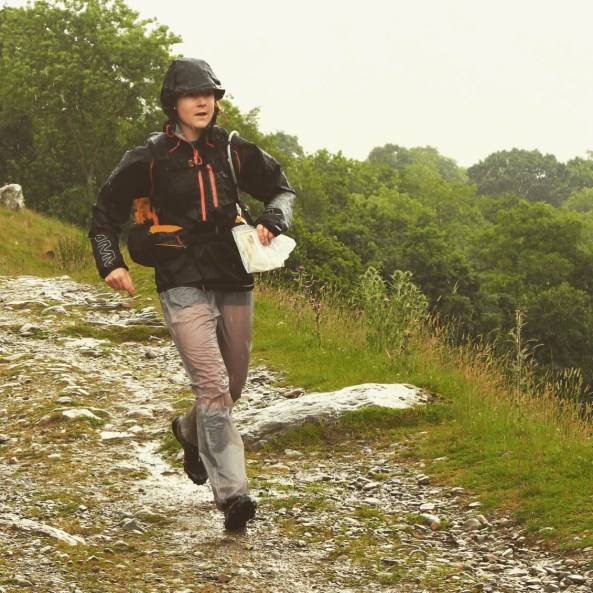The forecast for the weekend had everything….heavy rain, showers, wind, lightening, dry spells and the mountain weather forecast actually said it would be difficult conditions to walk in!! Sunday was due to be dryer but looked like a fun day in the lakes was to be had on the Saturday! The weather didn’t fail us, it progressively worsened over the course of the morning on the Saturday and I finally succumbed to waterproof trousers towards the end of the morning as my legs were just freezing! We had bought new innovate ultra light weight waterproofs and they were perfect. Light and instantly I felt warmer. My only frustration with them was as I got more and more soaked they started to fall down which became annoying and further more dangerous as when running down hill I was at risk of catching my shoe on them and tripping! Nothing will beat the weather for the Helvellyn ultra back in December though so I was relatively un deterred by it!